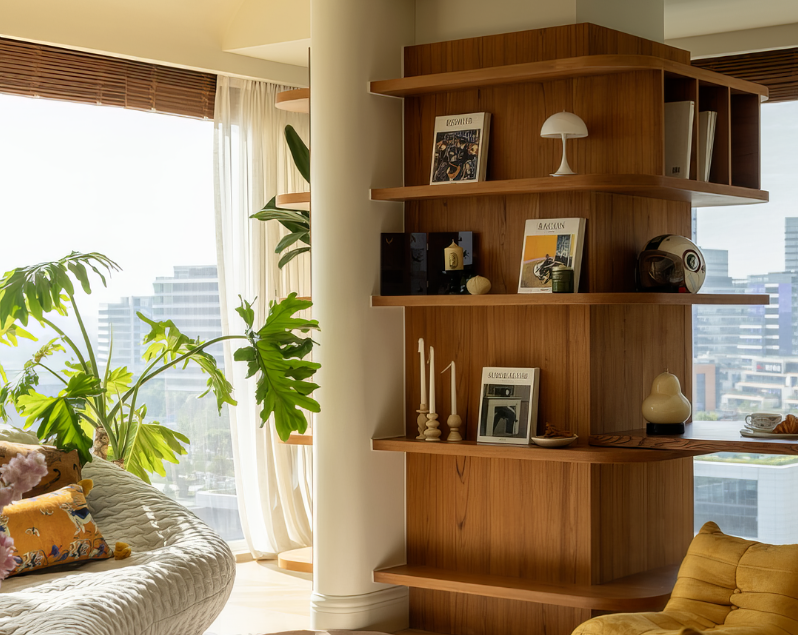 “喜欢法式、浅色,爸爸要一个独立书房,要很好的亲子互动氛围、很多阅读场景。”没有列清单、没有反复强调,她说:“具体的样子我没概念,反正我相信宋总(设计师宋夏)审美。”对设计师来说,这种完全信任固然是福气,但也意味着更高的创作自觉。所以设计师宋夏在与庞庞一起构建这个家的时候,关注的也不是某一种审美风格,而是这一家人之间的“生活力”——他们如何穿行、互动、独处、热闹,他们的爱在什么细节里流动。它需要有沉静的角落,也需要可以“打闹”的回旋余地;要有美的节制,也要有松弛的弹性;既能独处得好,也能团聚得自在。