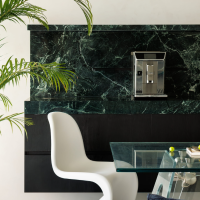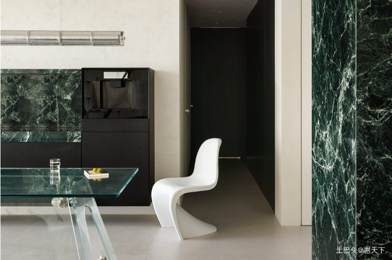 当繁复褪去,极简已成为当下时兴的风格,这是人们渴求生活回归简单的写照。但,简单并不等于无所求,它是一种向内的叩问,是抛却纷繁复杂的堆砌,将更多的“心思”藏在需要细心品味的地方。家,也应该是这样的一个所在,不追求过多的元素与装饰,却在细节处体现居住者的情趣、喜好,也给予每一个到访者一探究竟的机会。犹如这个家的绿色玄关墙,像一片波涛汹涌的大海,正在神秘地诉说,其中的故事需要每一个踏进这个家的人沉静下来耐心体会。