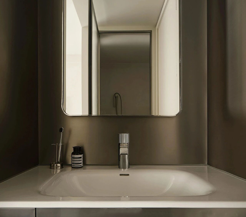 业主是一位非常有个性与品味的男士。在审美喜好与个性化表达上偏向金属质感的材质选择,例如不锈钢等。屋主需求:①喜欢不锈钢质感,中性冷淡的氛围环境;②需要将主卧内容纳一个卫生间;③开放式厨房使屋内视觉面积增大更加通透敞亮;④将阳台封入室内使用洗烘机并预留叠放位置;⑤在保证美观度的前提下满足基本实用功能以及舒适的布局;