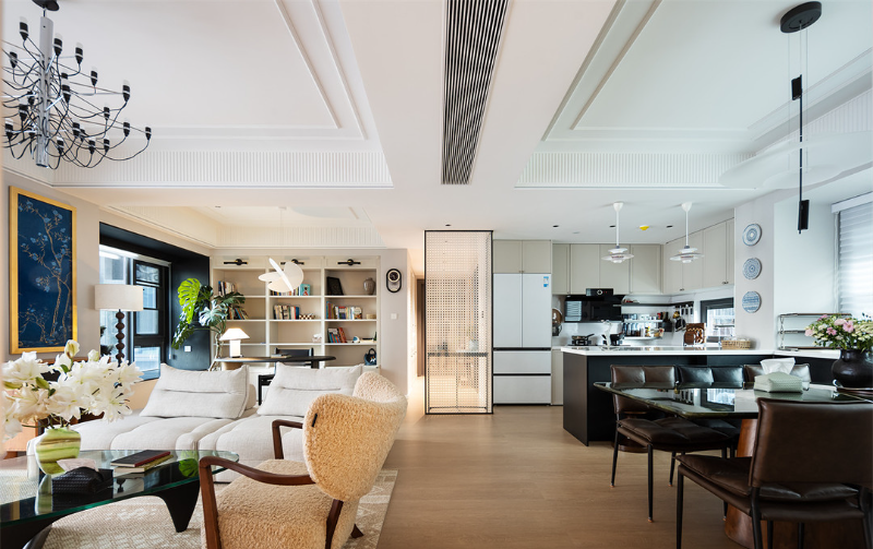 家的定义从来没有固定正解,设计是为了塑造更好状态。本案业主向往简单生活方式,对于他们一家来说,美式风格去繁就简的想法内涵确实符合他们需求。设计师在优化格局和规划动线、收纳等同时,删除过多繁琐元素,考虑自然光的氛围补充,透过光影、材质、器物折射出一部专属居者的“生活大作”。