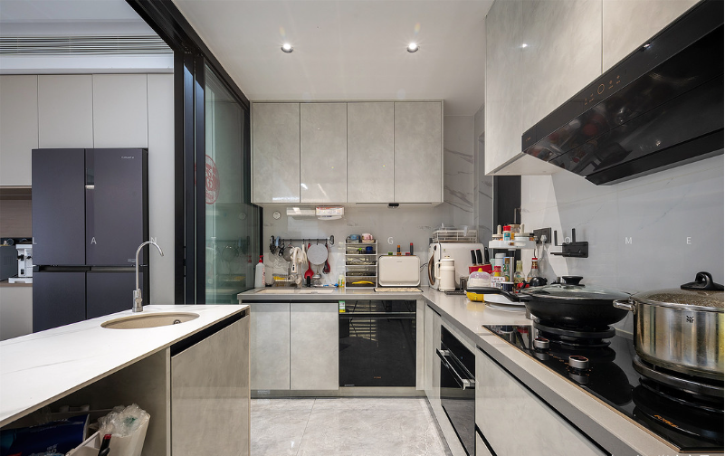 本案整体采用意式轻奢风格,注重空间的简洁与舒适感。功能分区清晰合理,客厅开阔明亮,便于家人日常互动交流。设计尤为侧重实用收纳,全屋多处定制柜体满足储物需求,各卧室均配备大衣柜与置物台,餐厅则增设了展示酒柜,兼顾屋主的收藏与品味爱好。阳台被巧妙打造成休闲花园,为家居环境增添自然意趣,共同营造出一个温馨而贴合生活的理想居所。